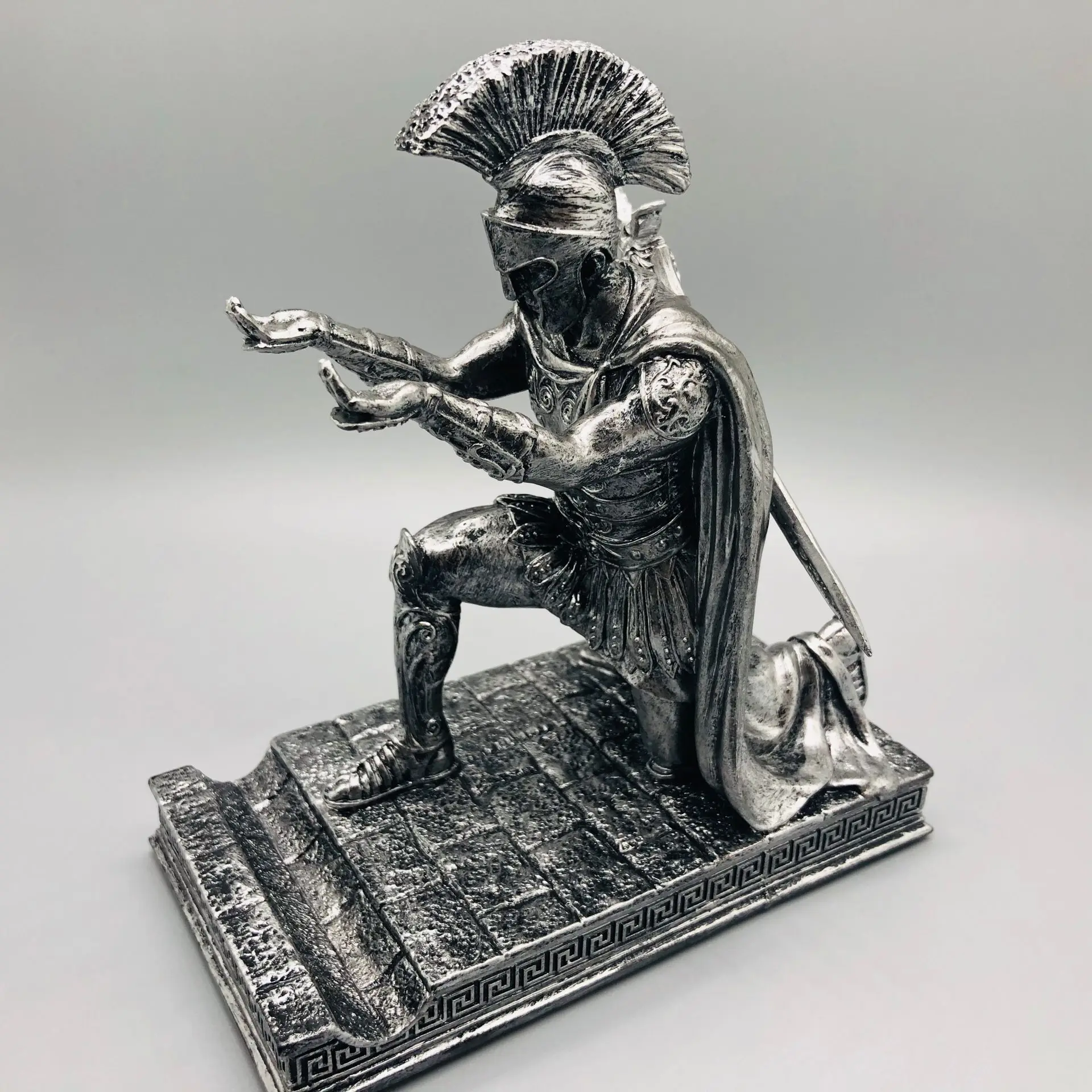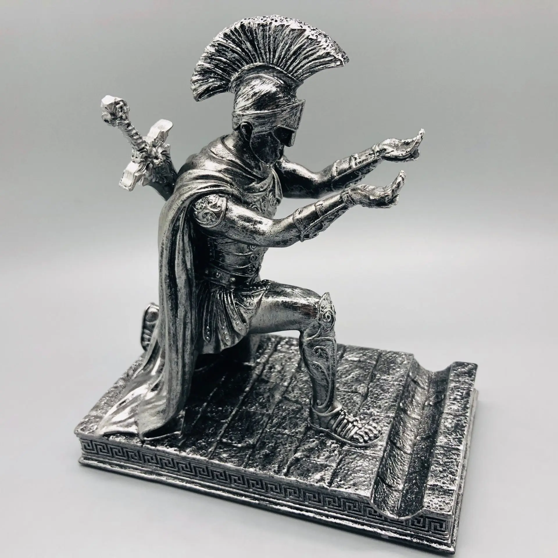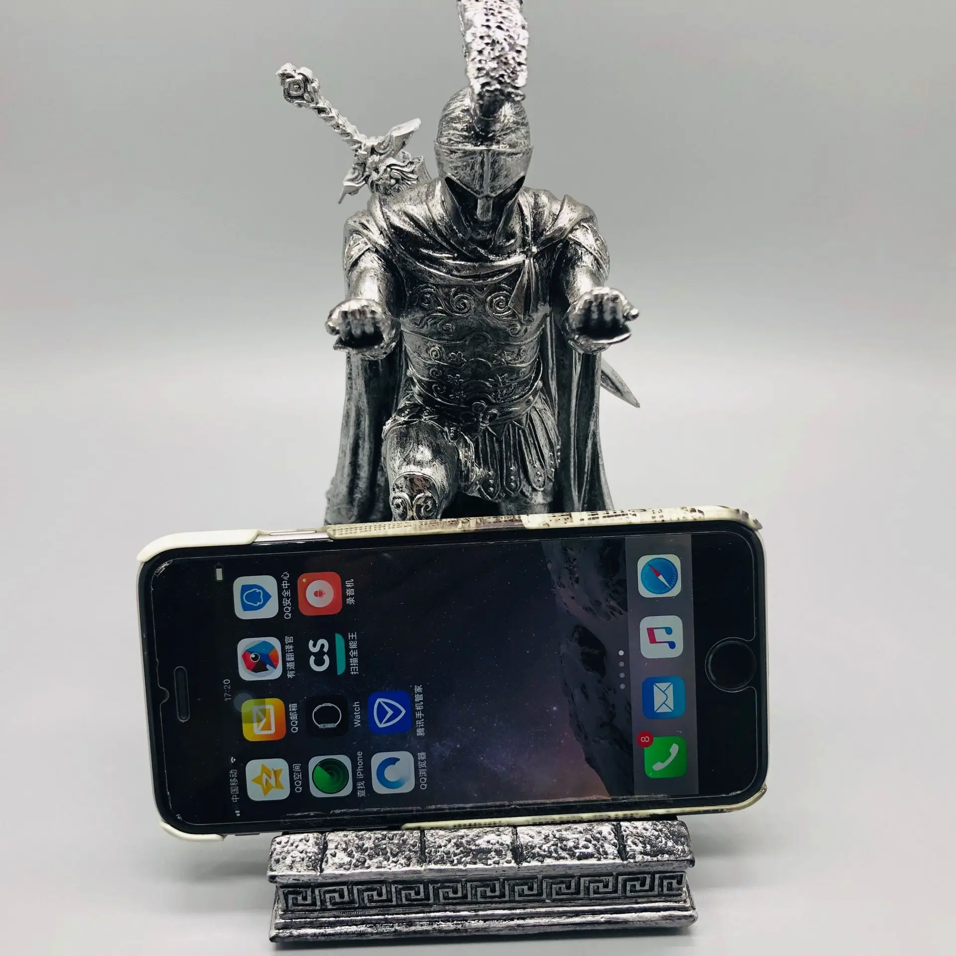 Caneta de cavaleiro e suporte de telefone, estatueta de soldado executivo, supor