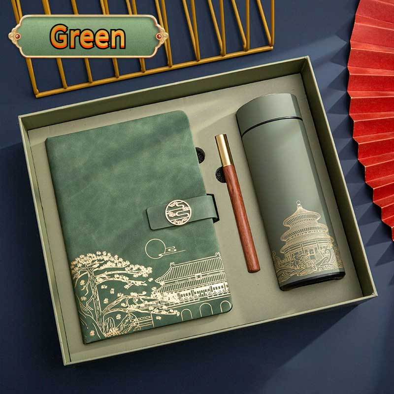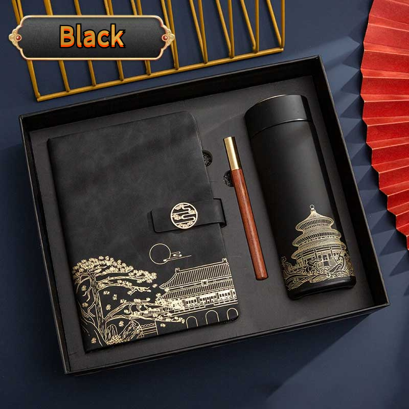 conjunto de presente caderno e garrafa termica nuvem auspiciosa estilo chines