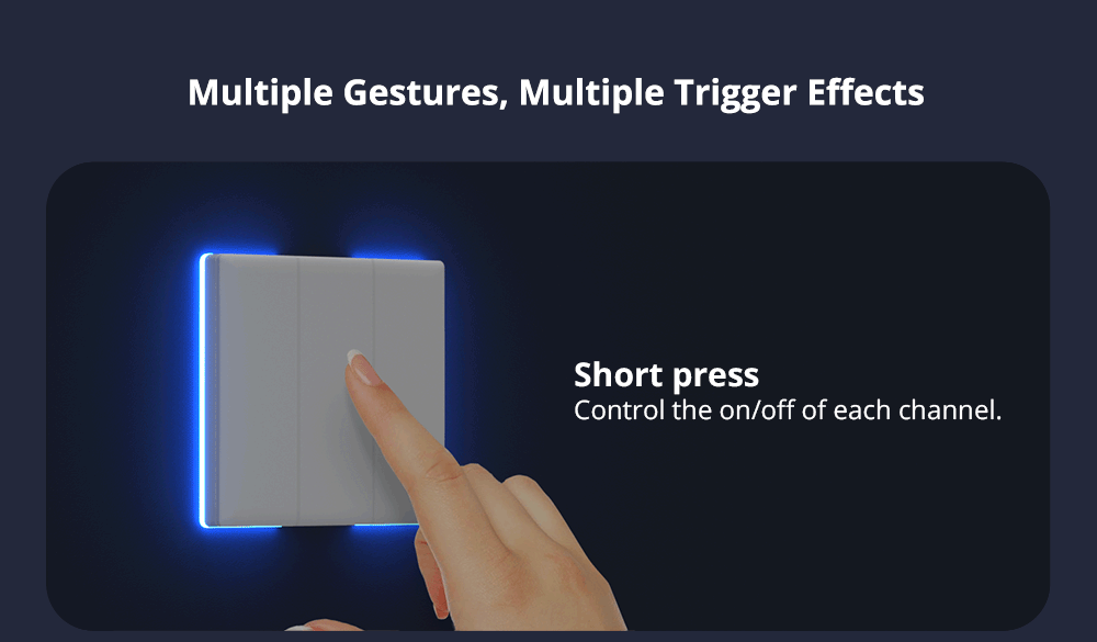 O SONOFF TX Ultimate (T5) é um interruptor de parede de acesso totalmente toque.Comparado com um interruptor de toque normal, o TX Ultimate possui uma área tocável muito maior, ocupando quase todo o painel.Assim, você pode ligá-lo/desligá-lo facilmente com um leve toque.