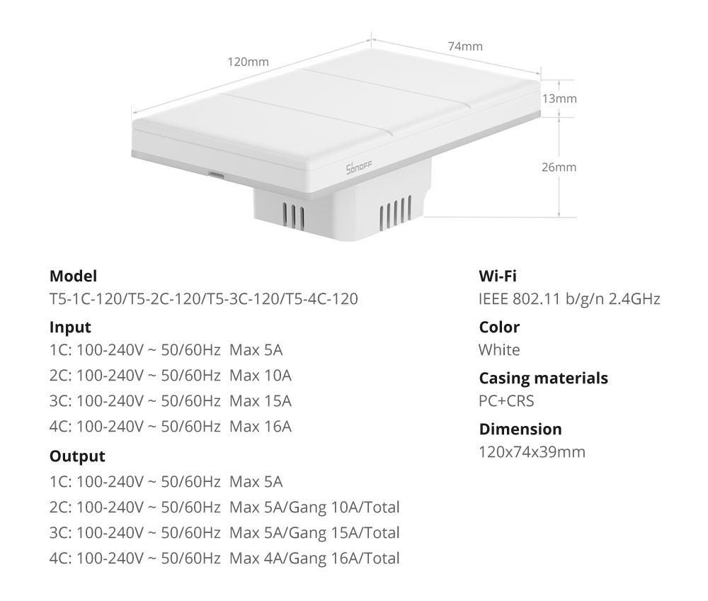 Número do modelo: Sonoff TX Ultimate T5 120 1C 2C 3C 4C