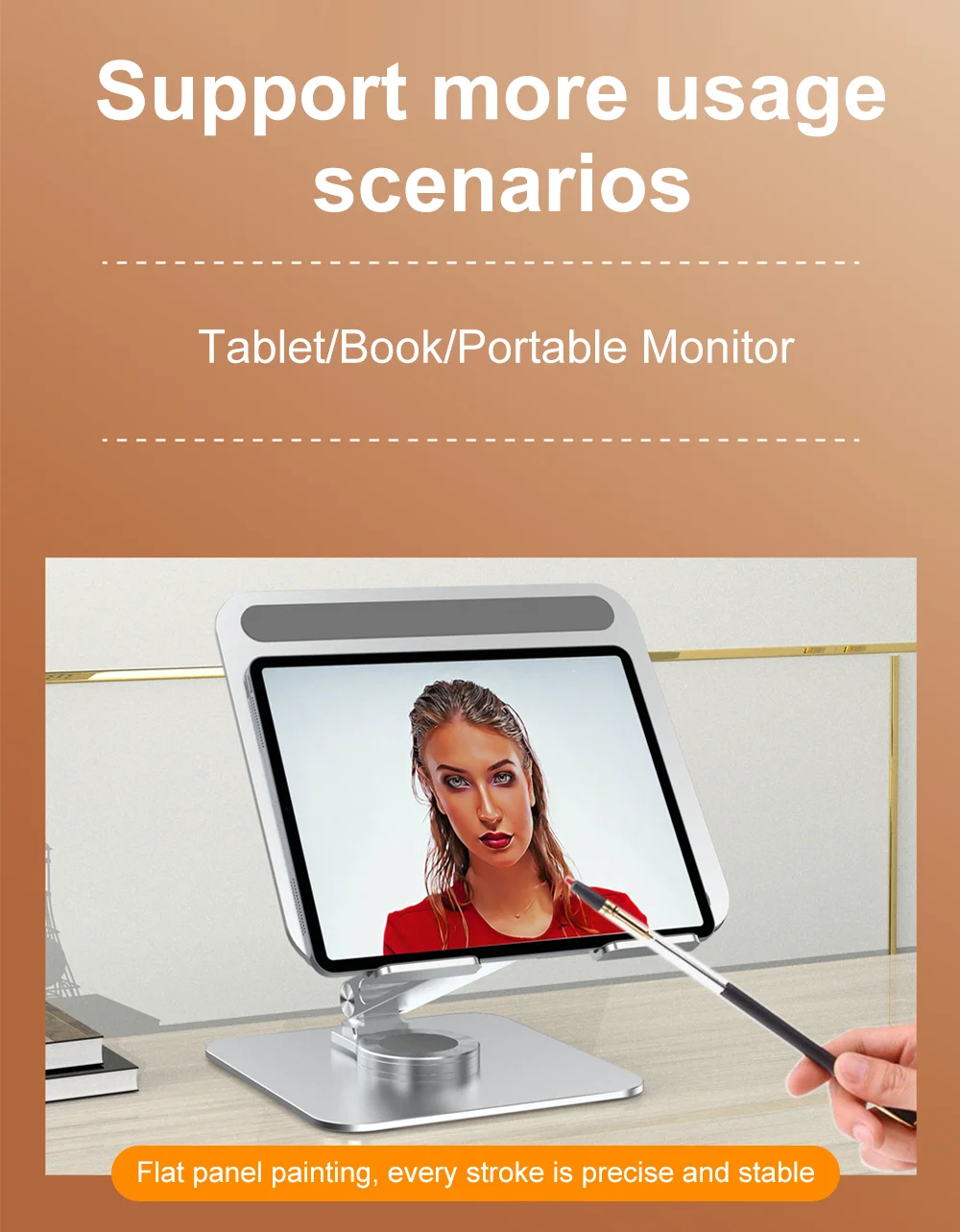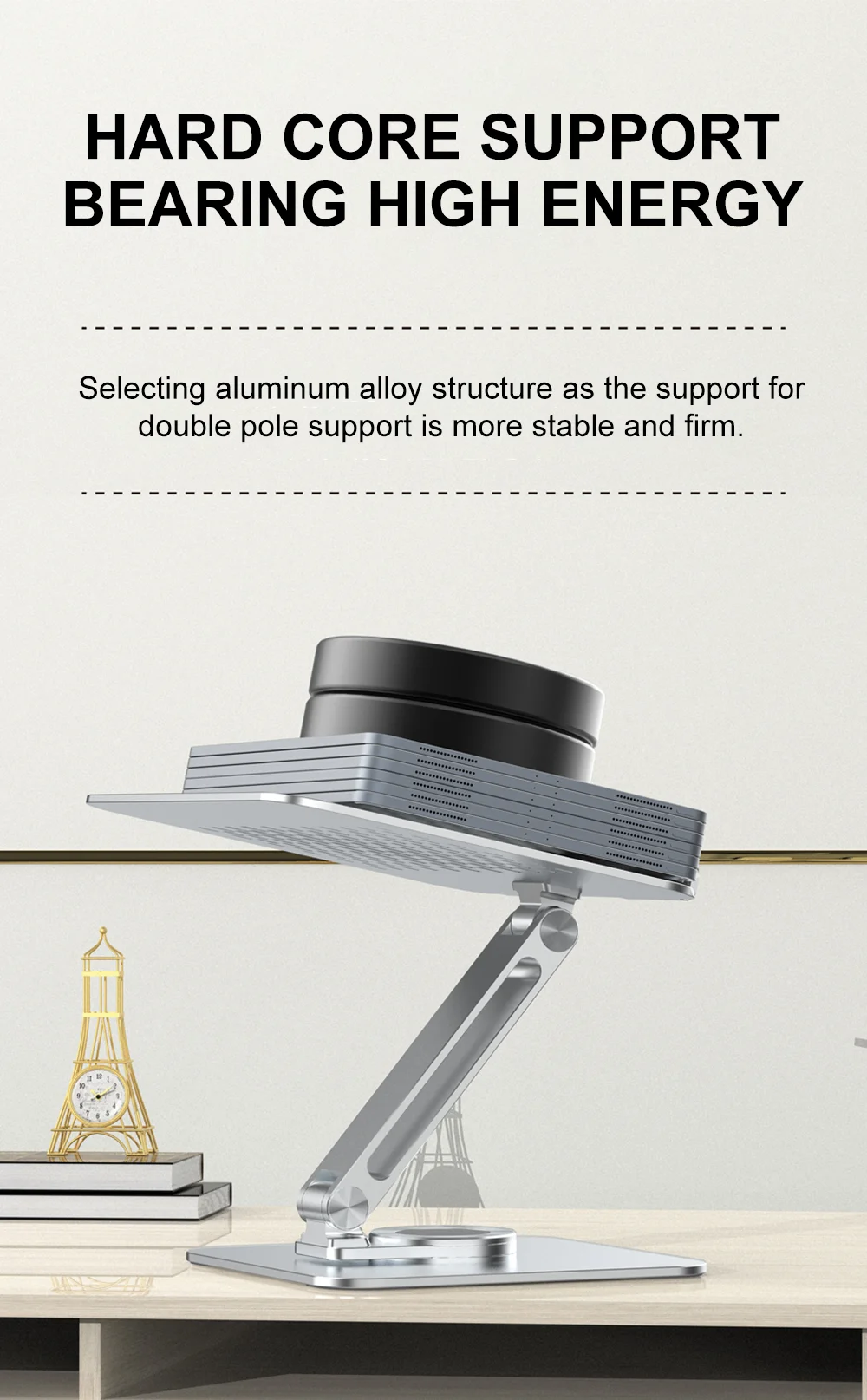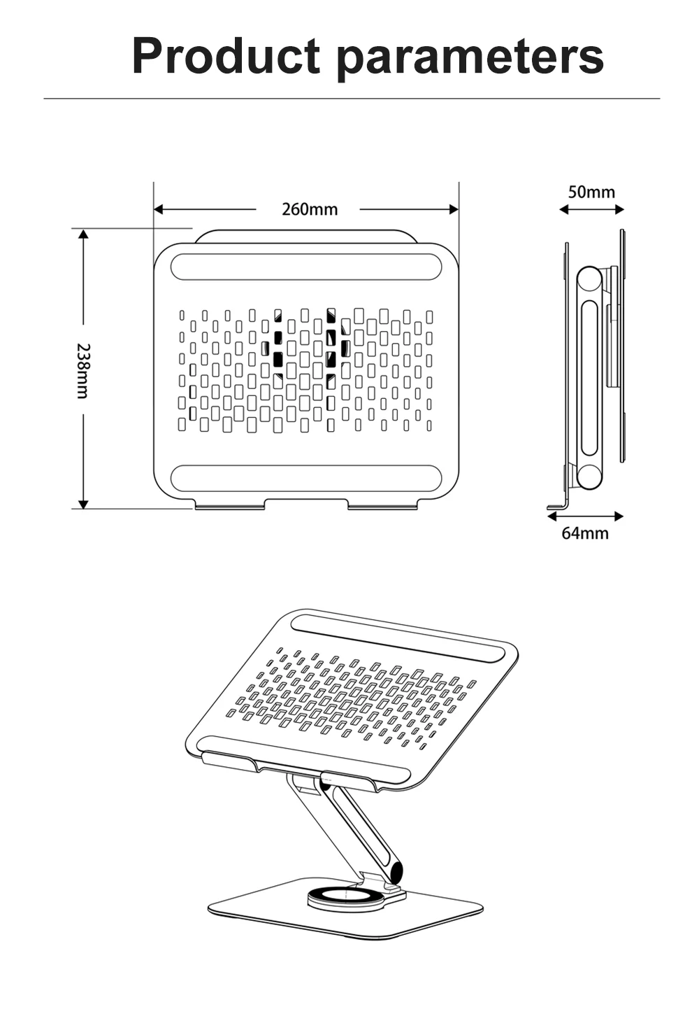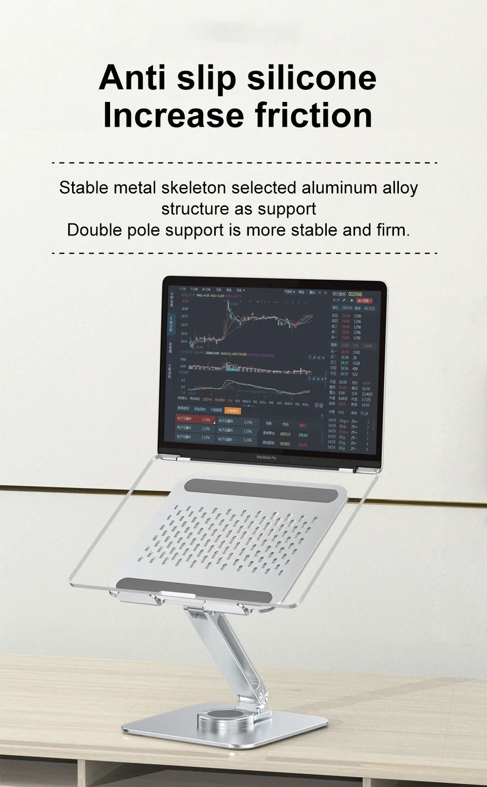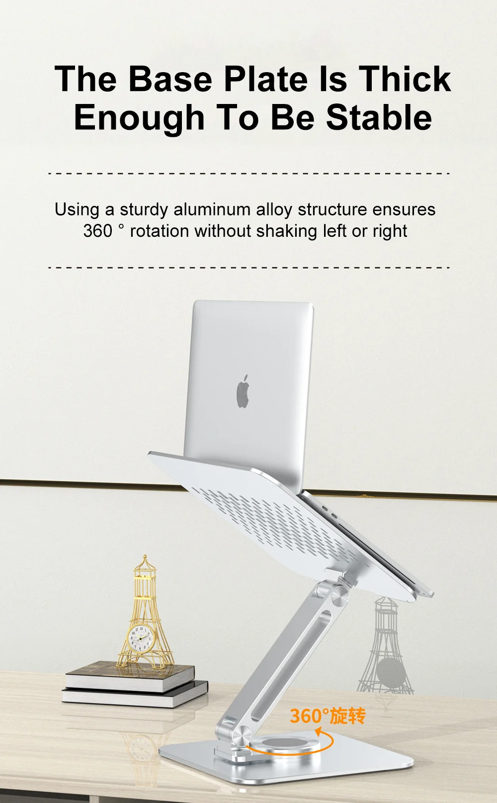 Com construção resistente, o suporte portatil para laptop em liga de aluminio rotacao 360 permite ajustar a posição e rodar a base para alinhar facilmente o ecrã ao teu ângulo de visão. A estrutura em alumínio ajuda na estabilidade e também favorece a ventilação do portátil.